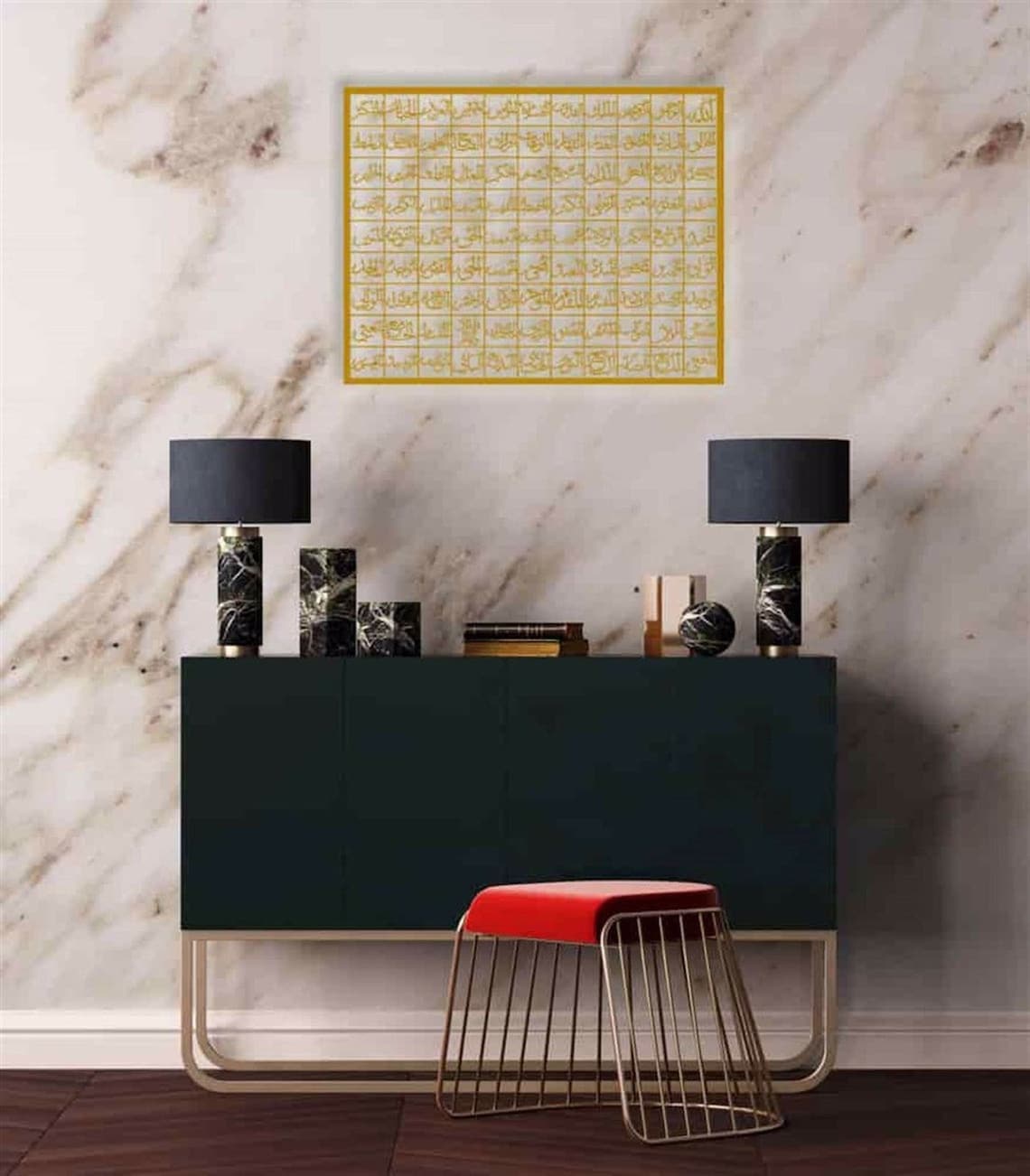 This Islamic Wall Art piece transcends mere decoration, inviting you to deepen your connection with the divine as you contemplate the infinite beauty and perfection encapsulated within each name. Whether displayed in your living room, prayer space, or office, this artwork serves as a focal point for reflection and contemplation, infusing your surroundings with tranquility and reverence.