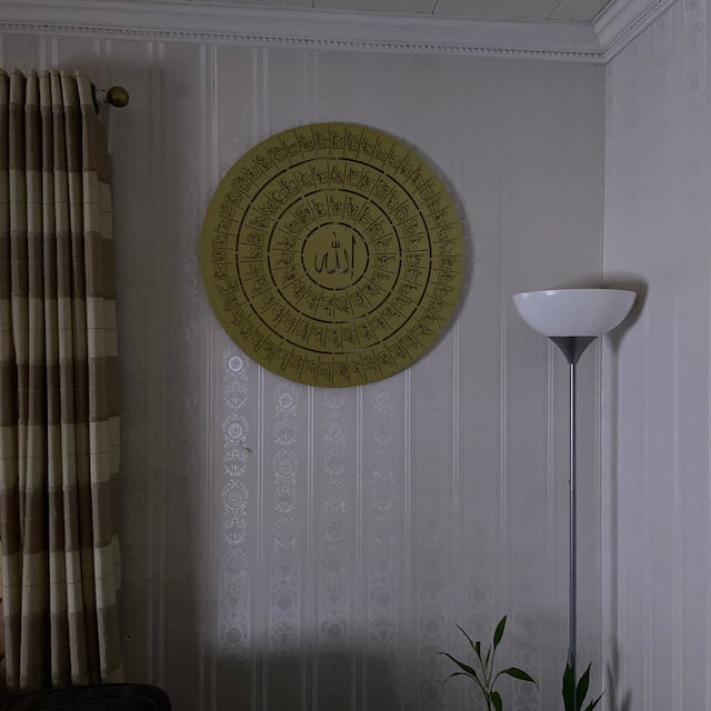 Perfect for Ramadan Decoration or to adorn your home with Islamic Art, this timeless piece serves as a constant reminder of divine attributes, bringing blessings and tranquility into your living space. Whether you're seeking a meaningful Muslim Gift or enhancing your Eid Home Décor, our Asmaul Husna Wall Decor is a symbol of faith and devotion that resonates with believers worldwide.