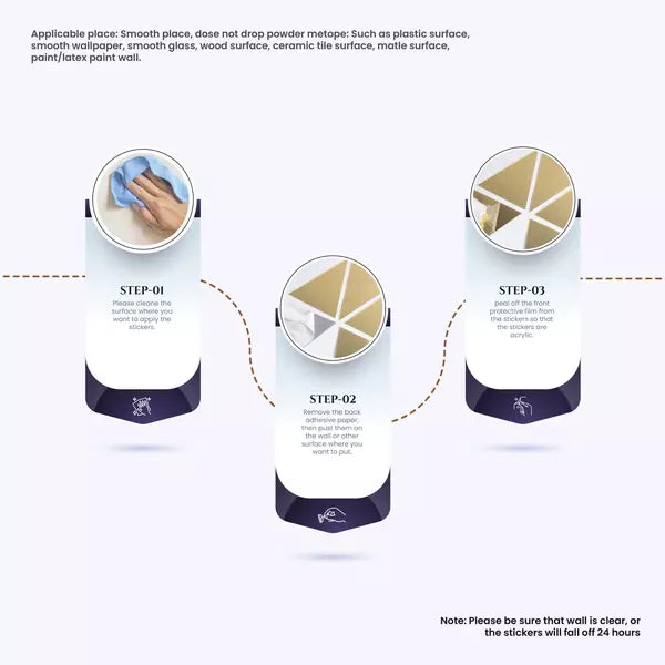 - Make sure the wall is super clean before installing this acrylic mirror, or it will fall within 24 hours.